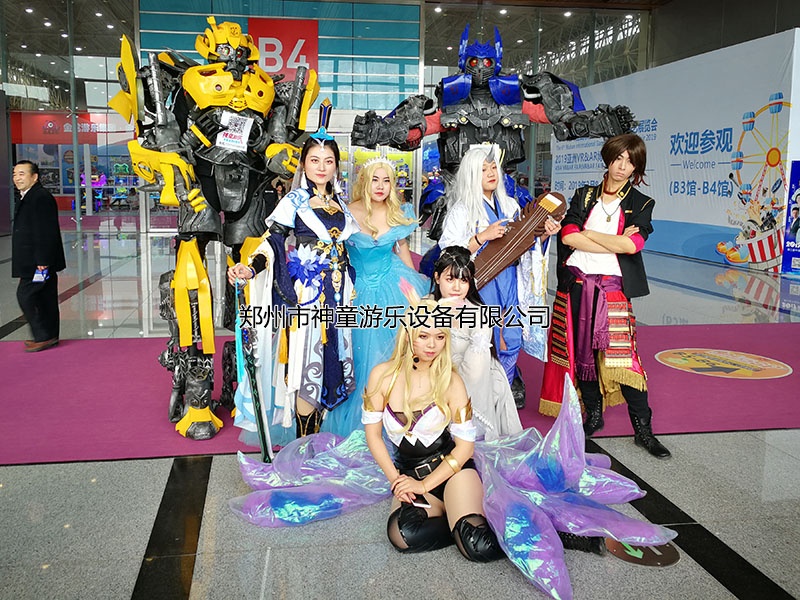 【遇见】#变形金刚#,新款可穿戴游乐设备人偶服装——神童机器人变身衣,擎天柱、大黄蜂、大红蜂、威震天……各种变形金刚盔甲造型,k8凯发广州公司包总莅临风靡2019第六届武汉国际电玩及游乐游艺展览会现场。